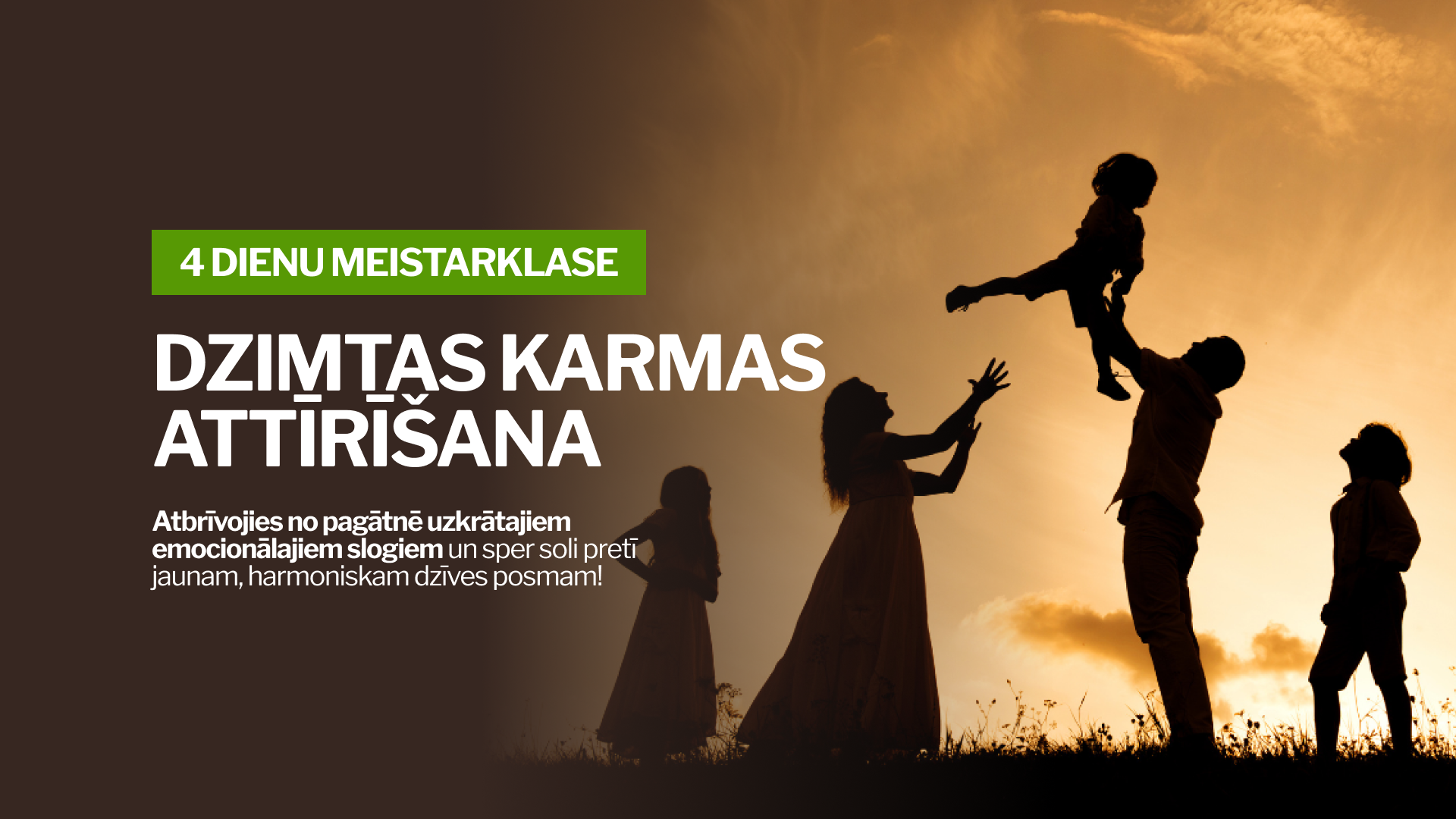 Meistarklasē tev būs iespēja atbrīvoties no pagātnē uzkrātajiem emocionālajiem slogiem un spert soli pretī jaunam, harmoniskam dzīves posmam.
